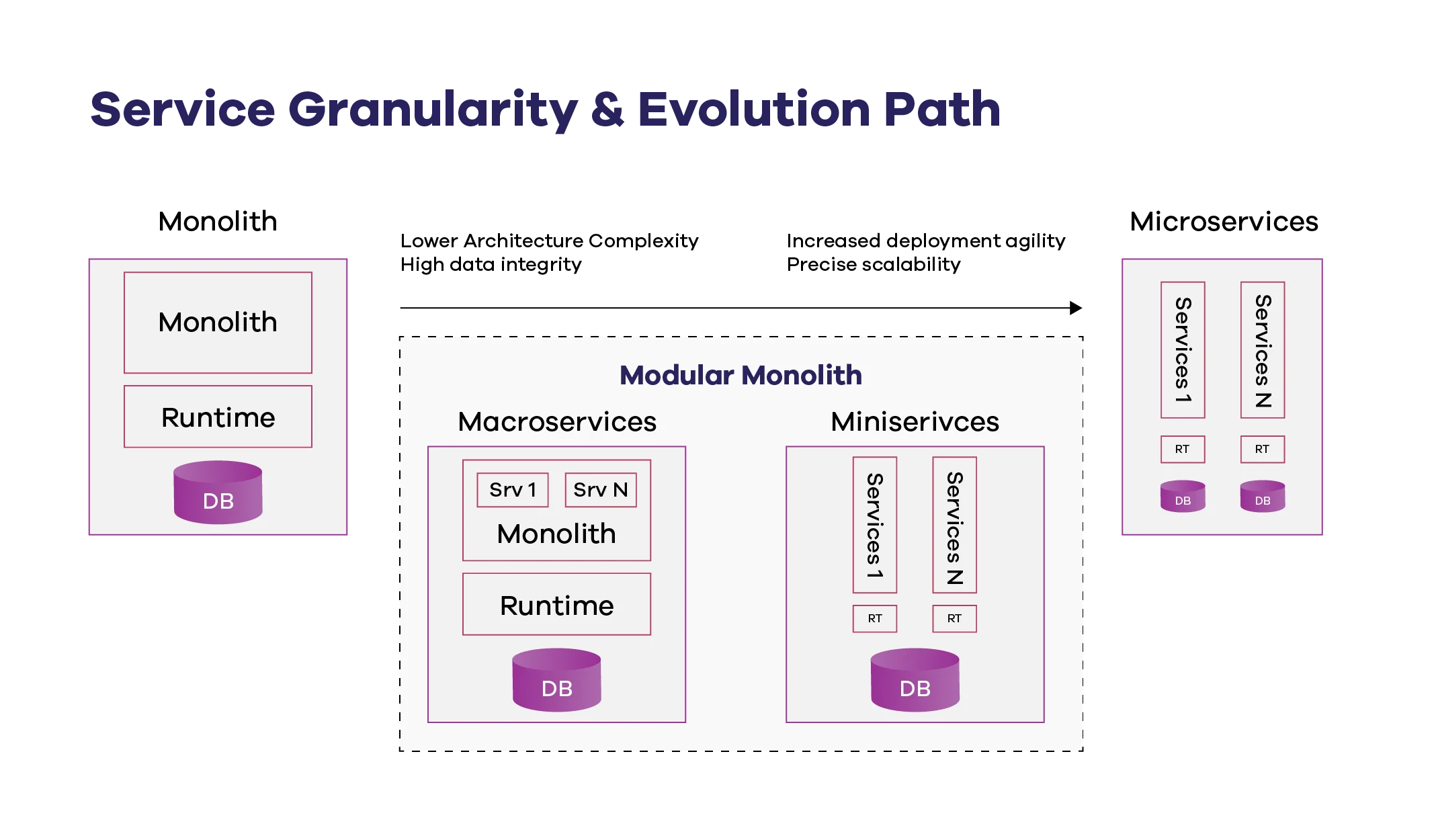 Beginning with pure monolithic architecture can limit your flexibility and scalability down the line. If you’re starting a new project and feel hesitant about diving into microservices, consider adopting macroservices or miniservices.