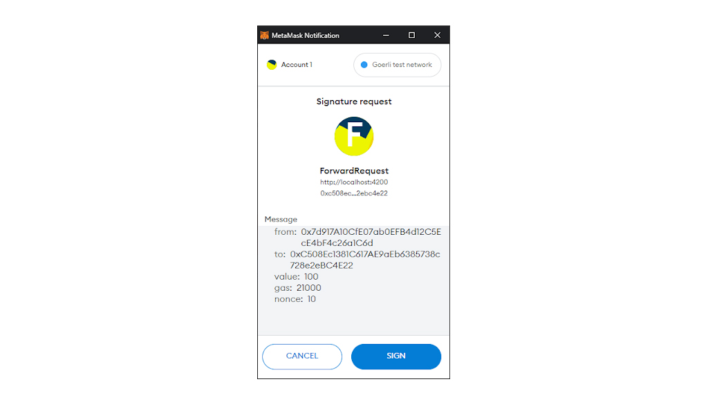 The forward request is the request or transaction that the relayer will execute. These five values will create one transfer transaction on the blockchain.