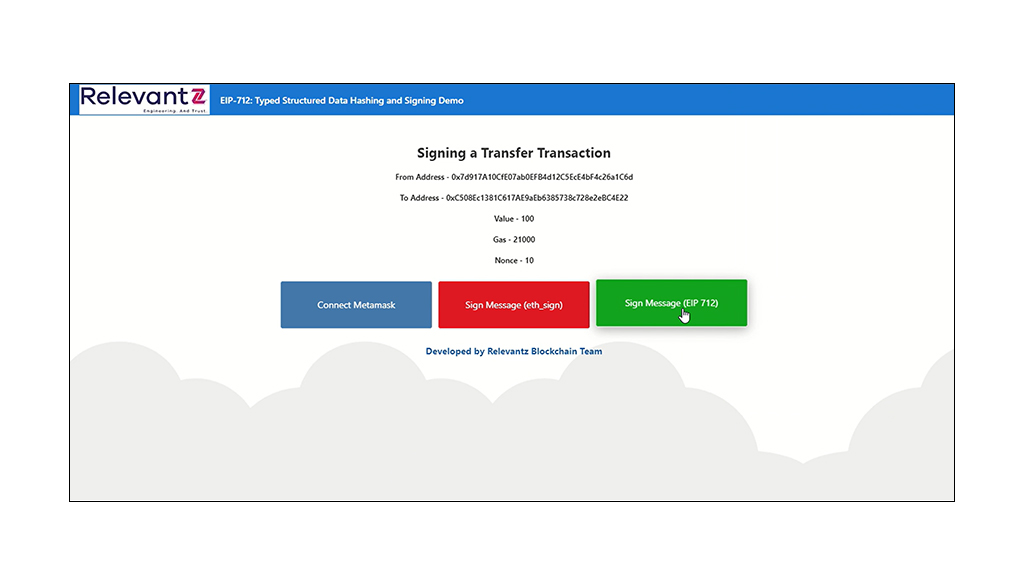 With the benefits of EIP-712, I see this standard as being yet another leap toward widespread adoption of dApps and digital assets such as NFTs and cryptocurrency. Standards like EIP-712 are constantly improving blockchain adoption, so organizations should be prepared for a blockchain-filled future. Relevantz can get you there.