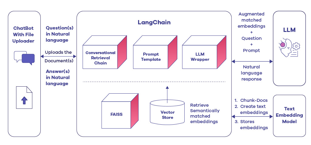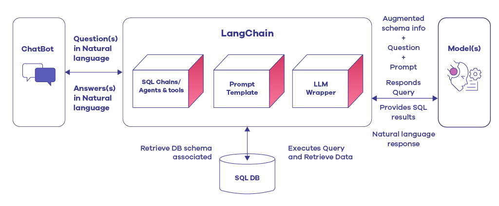 - LangChain: Acts as the orchestrator, managing the flow of queries and data.